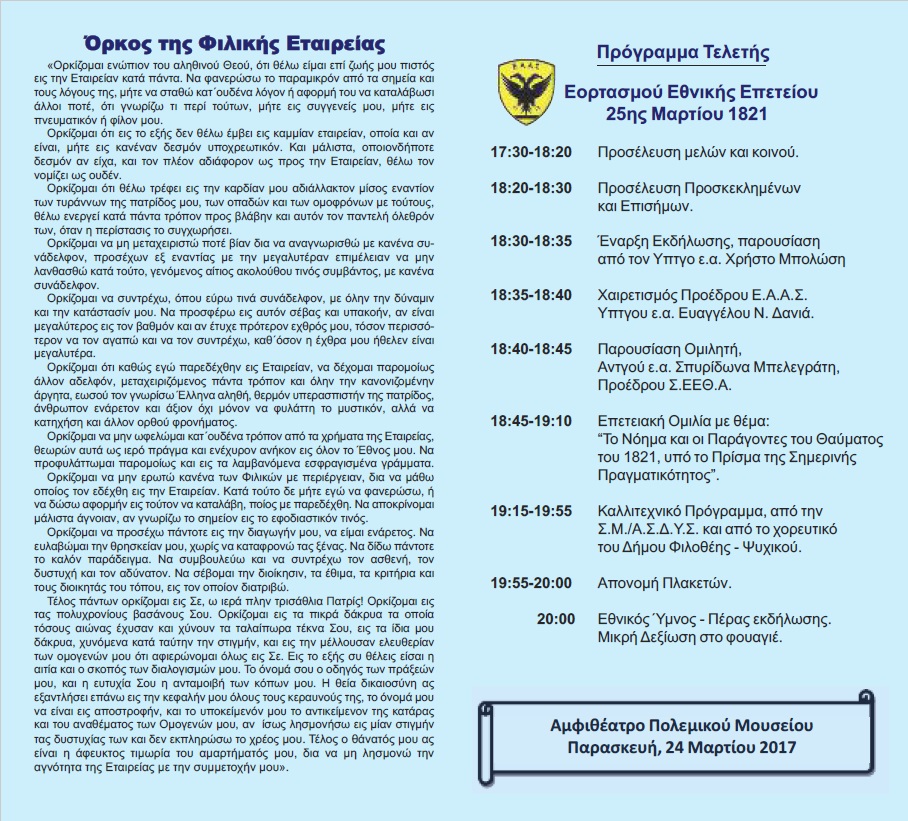 τους Ήρωες, να προσφέρει στην Πατρίδα μας, πνευματικά, ηθικά και ενεργά όπου απαιτείται, με πατριωτικό πνεύμα που τόσο ανάγκη